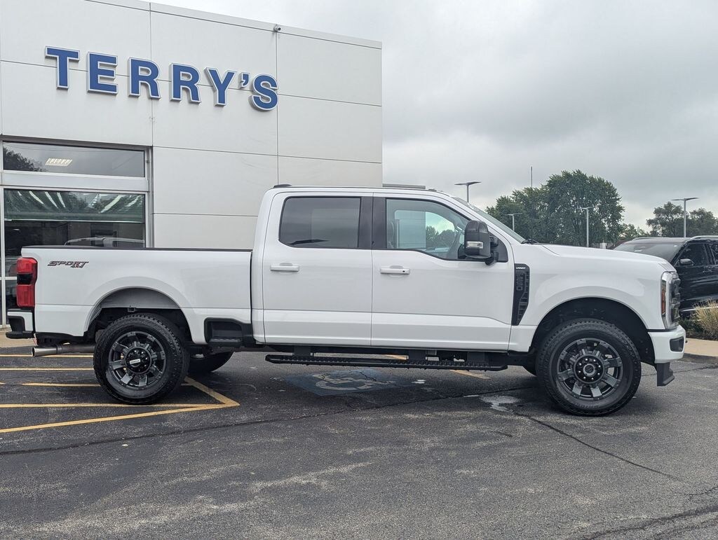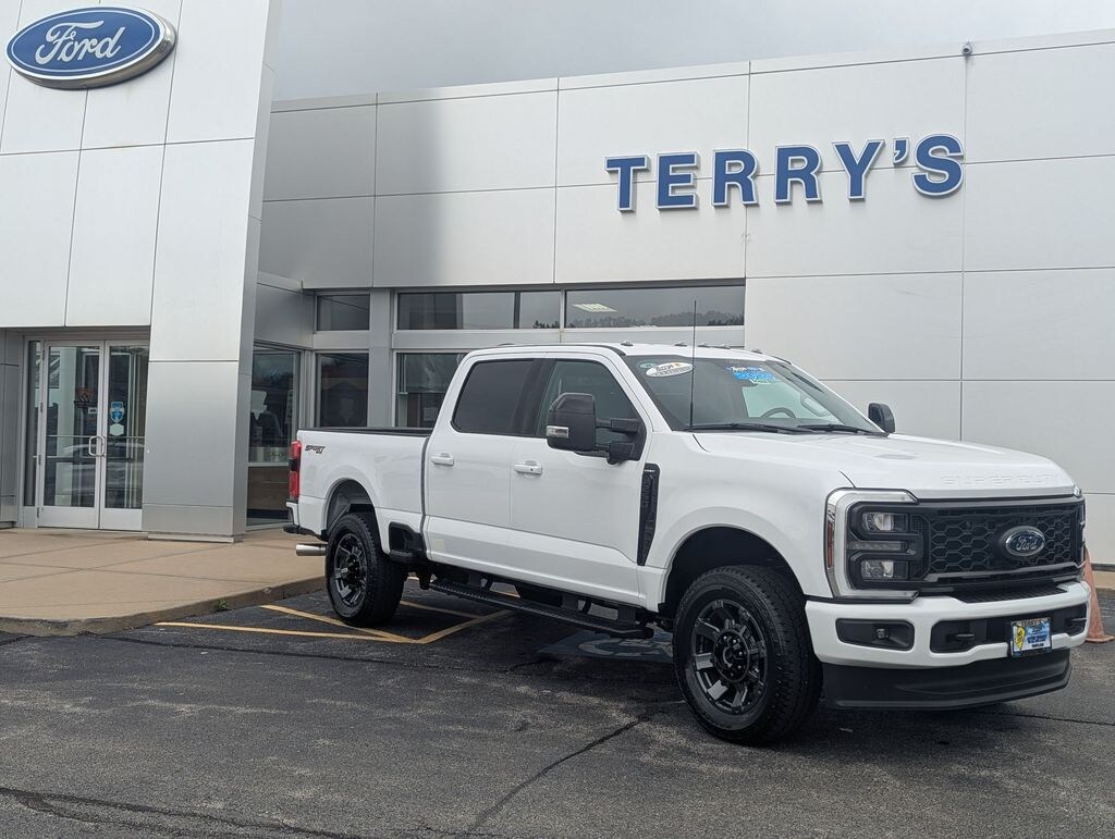 Oxford White 2024 Ford F-250SD Lariat 4WD 10-Speed Automatic 7.3L V8 PFI OHV 16V Federal 430hp ONE OWNER, CLEAN CARFAX, 4WD, Black Tow Hooks, Body-Color Front & Rear Bumpers, Chrome Exhaust Tip, Dark Painted Grille, F-250 >10K GVWR Package, Fully automatic headlights, Heated front seats, Heated rear seats, Heated steering wheel, Navigation system: Connected Navigation (includes complimentary 1-year trial), Order Code 608A, Platform Running Boards, Radio: B&O Sound System by Bang & Olufsen, SiriusXM Radio w/360L, Sport 4x4 Box Side Decal, Sport Appearance Package, SYNC 4 w/Enhanced Voice Recognition, Wheels: 20" Dark Carbonized Gray Painted Aluminum.